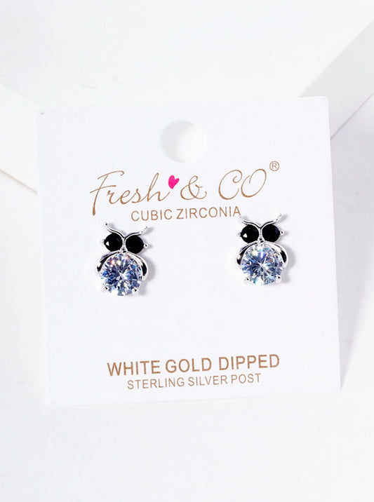 White Gold Dipped CZ Pave 4mm Ribbon Bow Post Stud Earrings