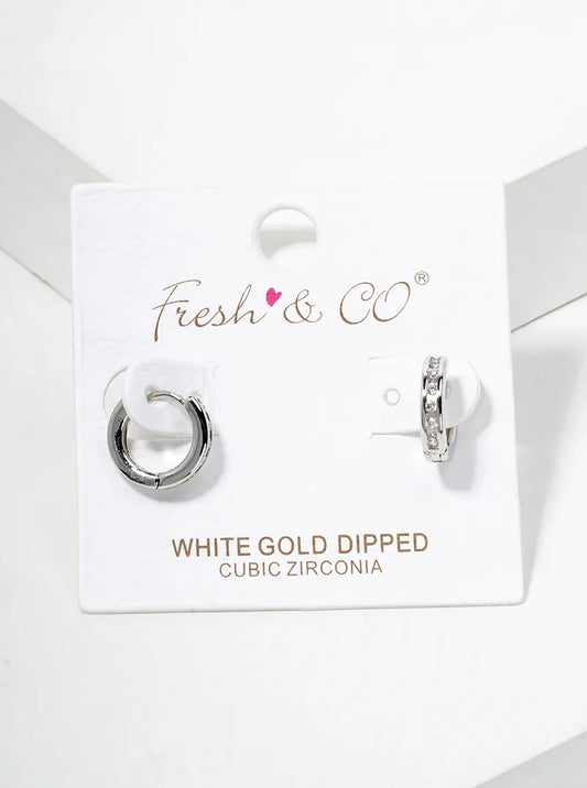 White Gold Dipped CZ Pave 10mm Huggie Hoop Earrings