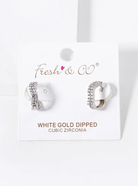 White Gold Dipped CZ Pave 7mm Dainty Open Hoop Earrings