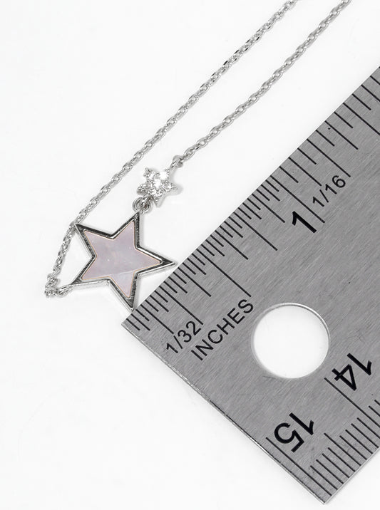 White Gold Dipped CZ MOP Double Star Pendant Delicate Necklace