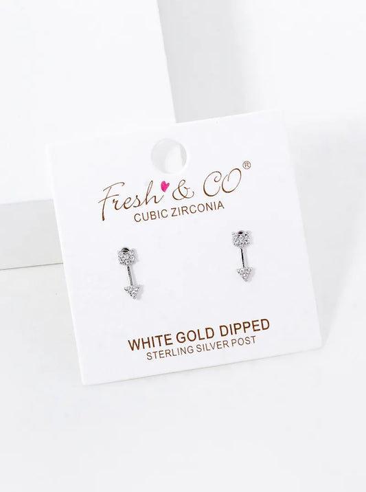 White Gold Dipped CZ Pave Arrow Stud Earrings