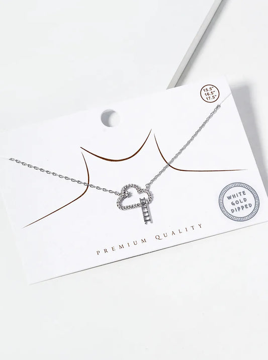 White Gold Dipped CZ Pave Cloud Ladder Pendant Necklace