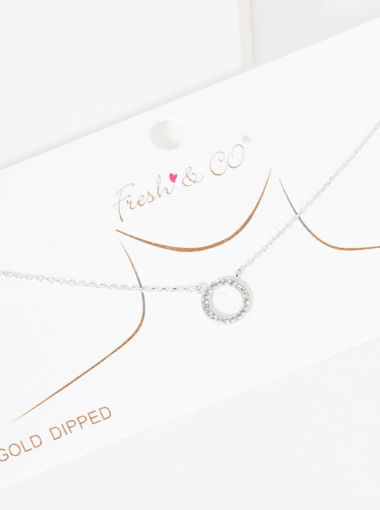 White Gold Dipped CZ Pave Circle Pendant Delicate Necklace