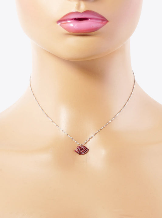 White Gold Dipped CZ Pave Lips Pendant Necklace