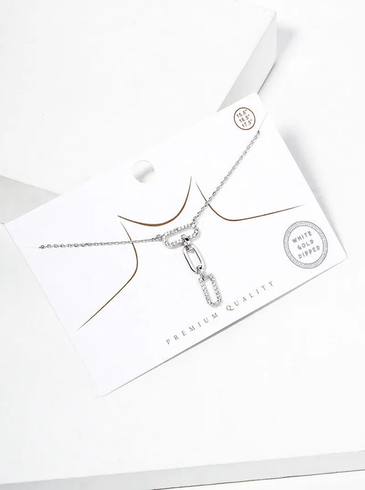 White Gold Dipped CZ Pave Link Chain Pendant Delicate Necklace
