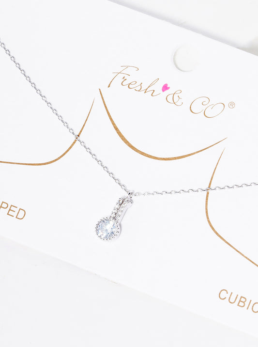 White Gold Dipped CZ Pave Round Pendant Delicate Necklace