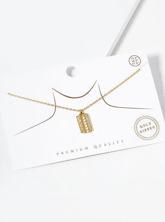 White Gold Dipped CZ Pave Razor Pendant Necklace