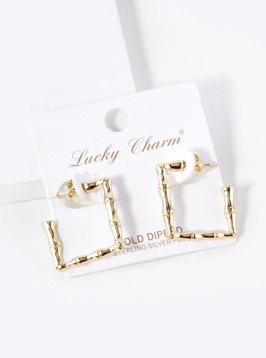 18K Gold Dipped 23mm Bamboo Square Hoop Earrings