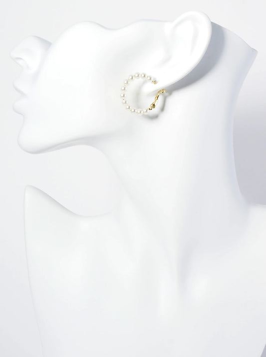 18K Gold Dipped 25mm Pearl Beaded Hoop Earrings With Latch Back Closure