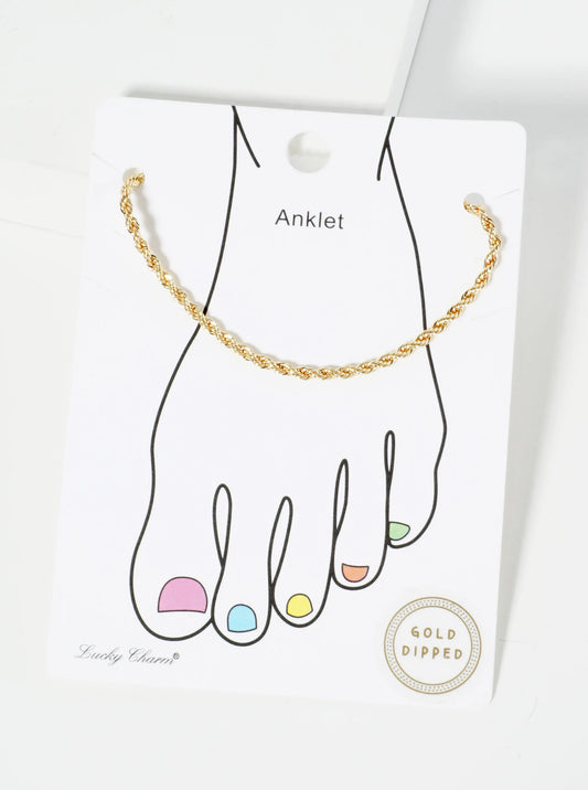 18K Gold Dipped 2mm Textured Brass Rope Chain Anklet