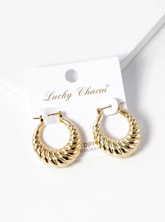 18k Gold Dipped 25mm Textured Hollow Puffy Hoop Earrings
