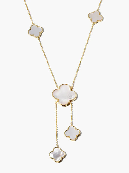 White Gold Dipped Five Quatrefoil Drop Lariat Necklace