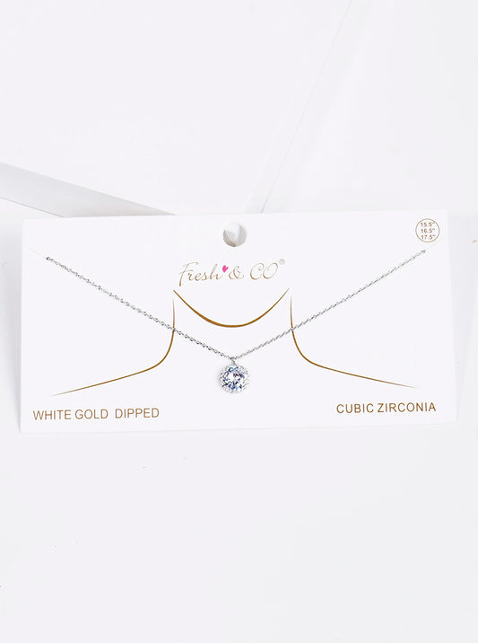 White Gold Dipped CZ Round Pendant Delicate Necklace