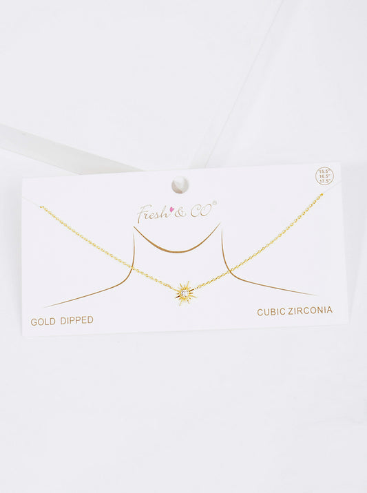 White Gold Dipped CZ Sunburst Pendant Delicate Necklace