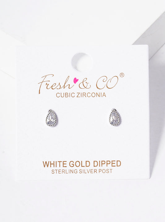 White Gold Dipped Dainty CZ Teardrop Post Stud Earrings
