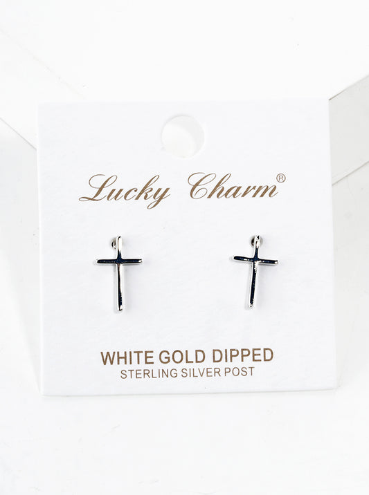 White Gold Dipped Dainty Cross Post Stud Earrings