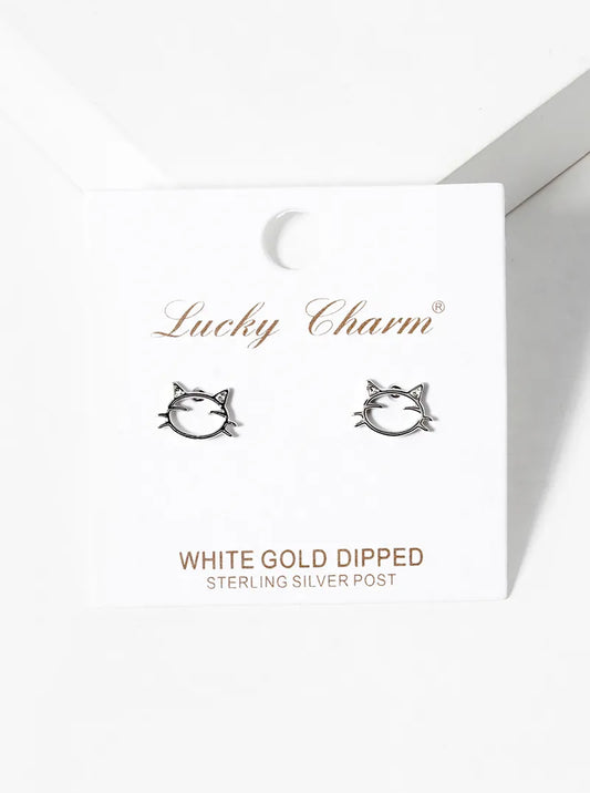 White Gold Dipped Delicate Cat Post Stud Earrings