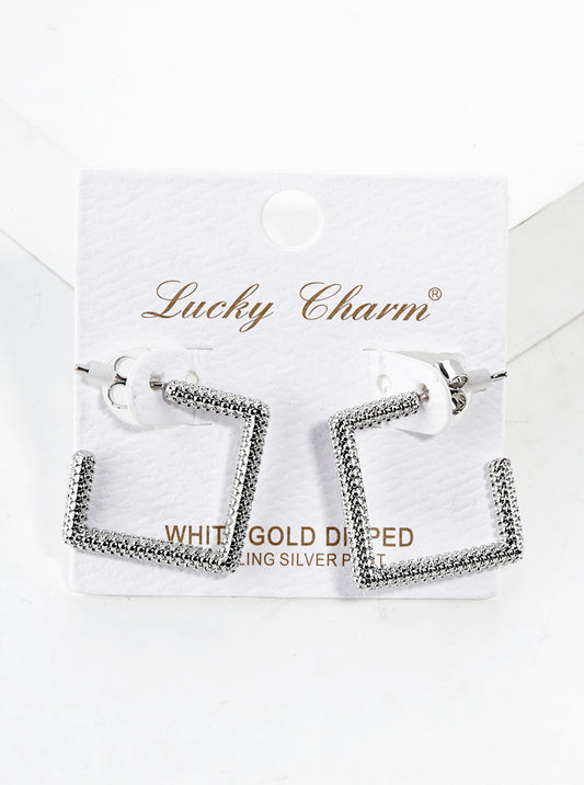 White Gold Dipped Textured Metal Square 20mm Open Hoop Earrings