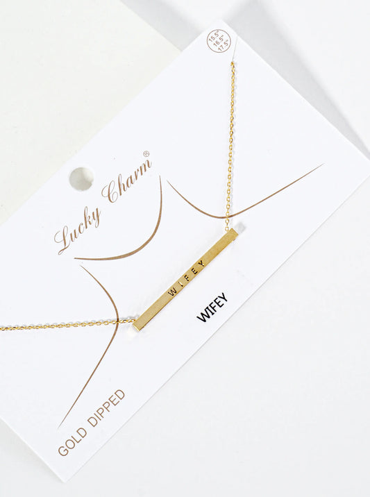 Wifey Engraved 18K Gold Dipped Horizontal Brass Bar Pendant Inspirational Necklace