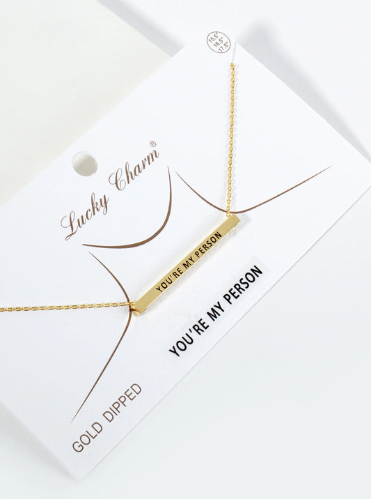 You Are My Person Engraved 18K Gold Dipped Horizontal Brass Bar Pendant Inspirational Necklace