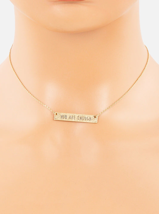 You Are Enough Engraved Horizontal Bar Pendant Necklace