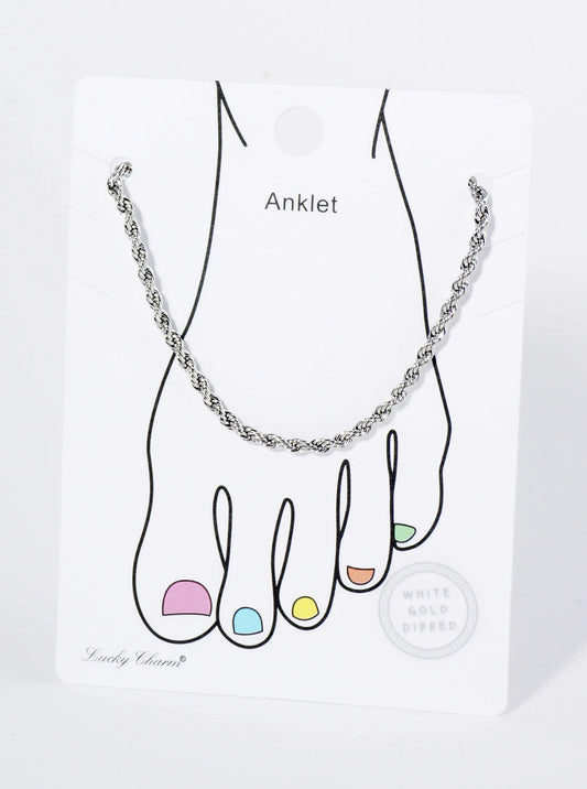 18K Gold Dipped 3mm Textured Brass Rope Chain Anklet