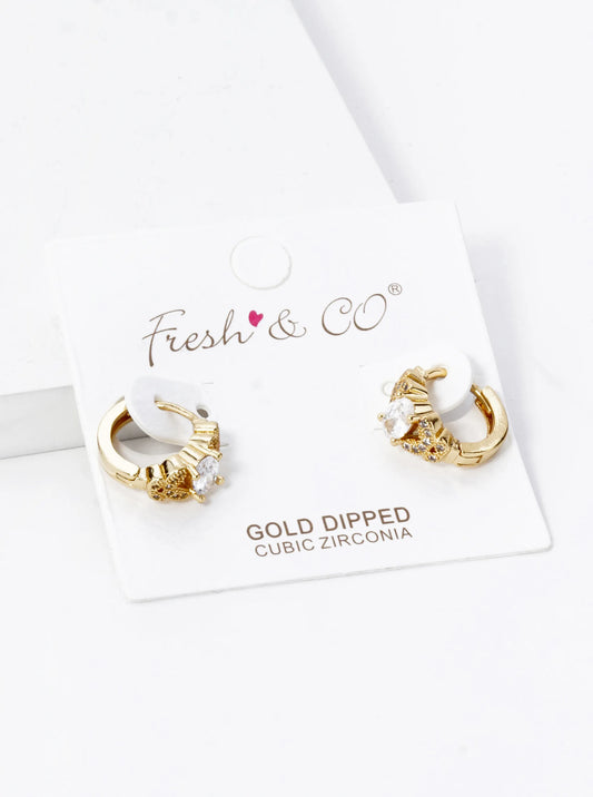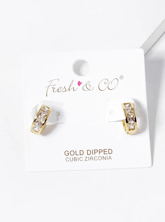 18k Gold Dipped 4 Square CZ Pave Huggie Hoop Earrings