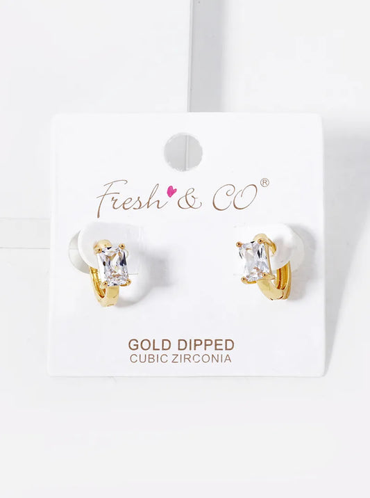 18K Gold Dipped 4-Prong Rectangle Cubic Zirconia Accent Huggie Hoop Earrings