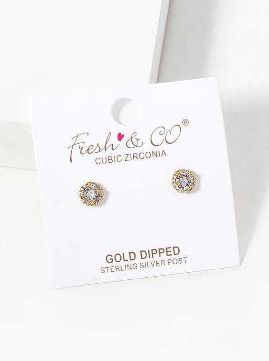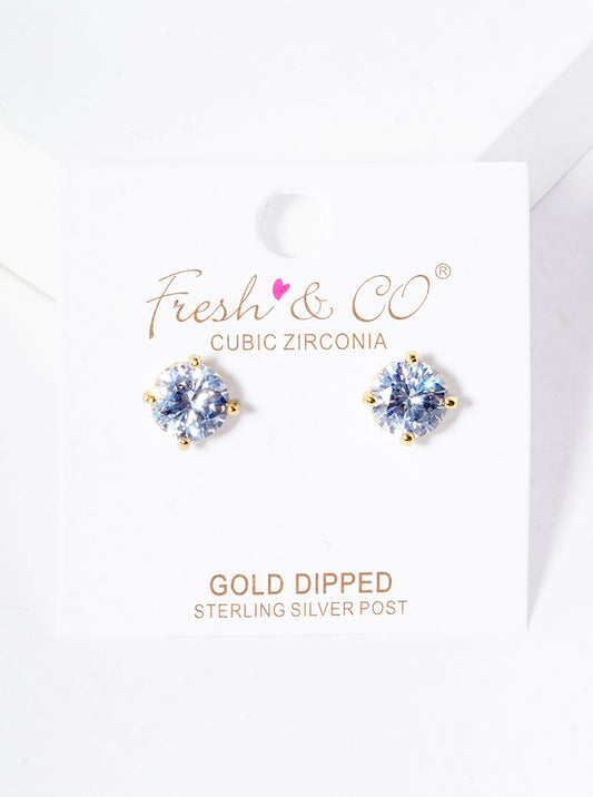 18k Gold Dipped 4-prong Round CZ Post Stud Earrings