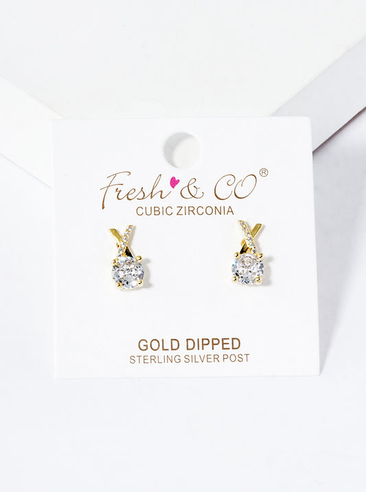 18k Gold Dipped 4-prong CZ Drop X Shape Post Stud Earrings