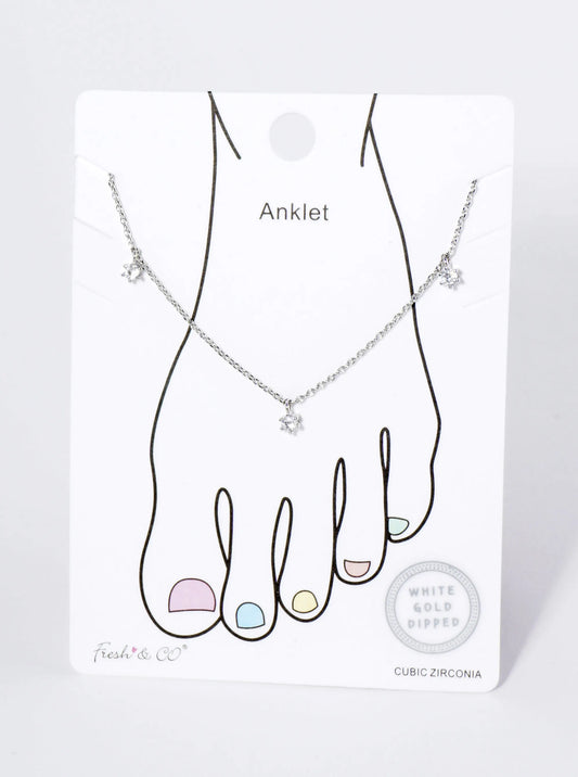 18K Gold Dipped 3mm Three Cubic Zirconia Stone Charms Brass Chain Anklet