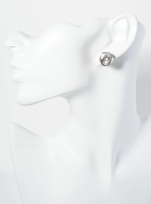 14mm Textured Metal Lightly Flattened Love Knot Stud Earrings