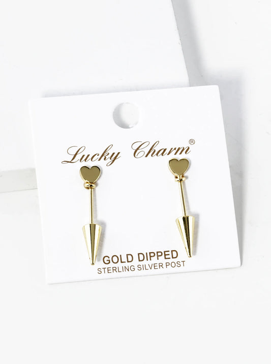 18K Gold Dipped 1 Inch Cupid Arrow Stud Earrings