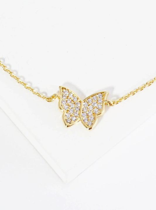 18K Gold Dipped 9mm Cubic Zirconia Pave Butterfly Brass Chain Anklet