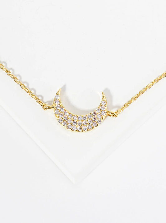 18K Gold Dipped 9mm Cubic Zirconia Pave Crescent Moon Brass Chain Anklet