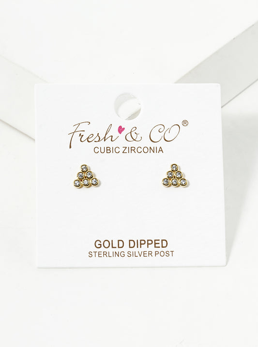 18K Gold Dipped Classic CZ Triangle Stud Earrings