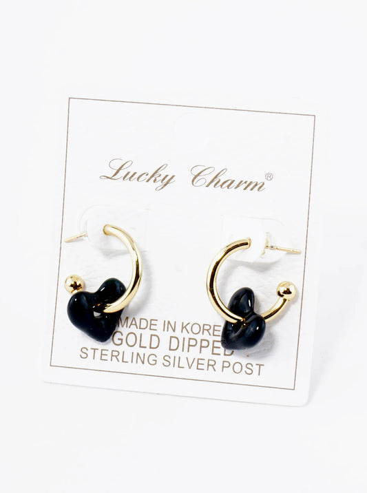 18K Gold Dipped Color Coated Heart Drop 15mm Hoop Earrings