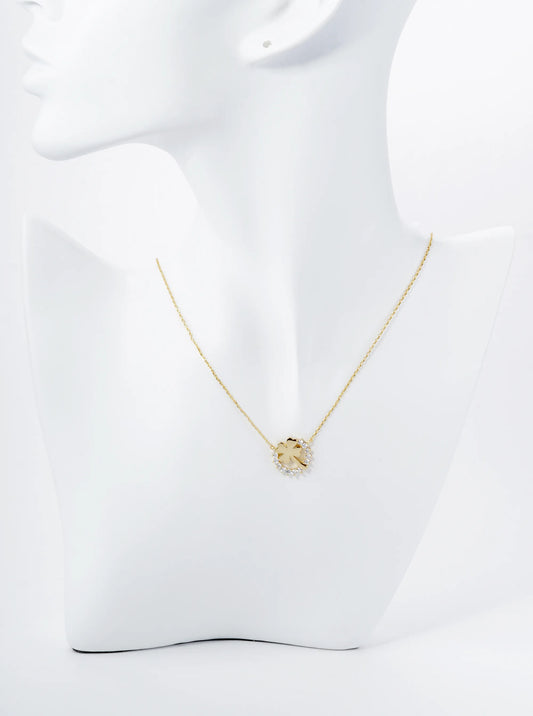 18K Gold Dipped Cubic Zirconia Pave Circle With Clover Pendant Necklace