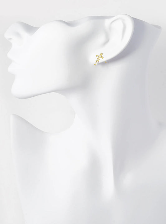 18K Gold Dipped Cubic Zirconia Pave Cross Stud Earrings