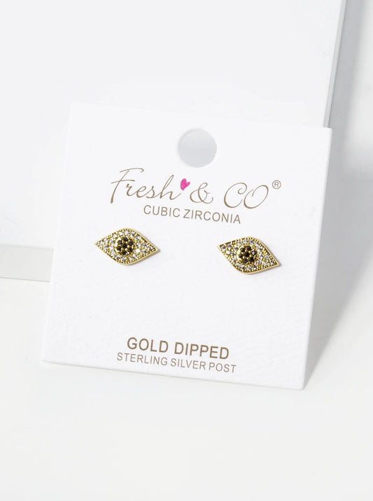 18K Gold Dipped Cubic Zirconia Pave Evil Eye Stud Earrings