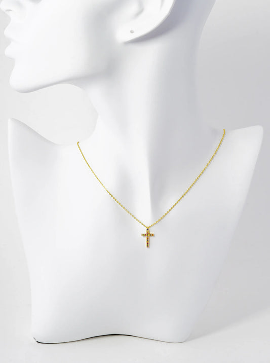 18K Gold Dipped Cubic Zirconia Pave Cross Pendant Necklace