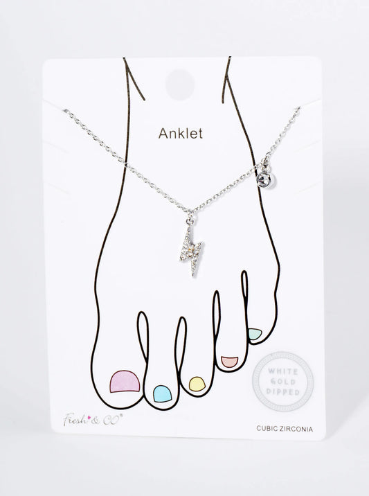 18K Gold Dipped Cubic Zirconia Pave Lightning Charm Brass Chain Anklet
