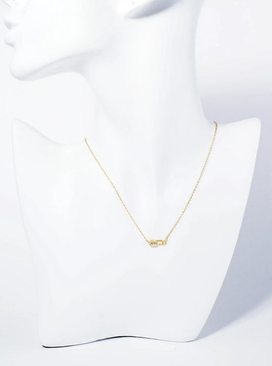 18K Gold Dipped Cubic Zirconia Petite Safety Pin Pendant Necklace