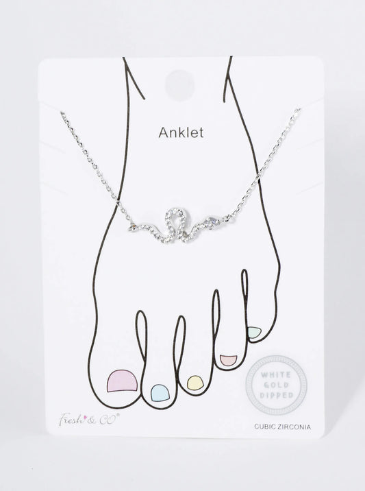 18K Gold Dipped Cubic Zirconia Snake Brass Chain Anklet