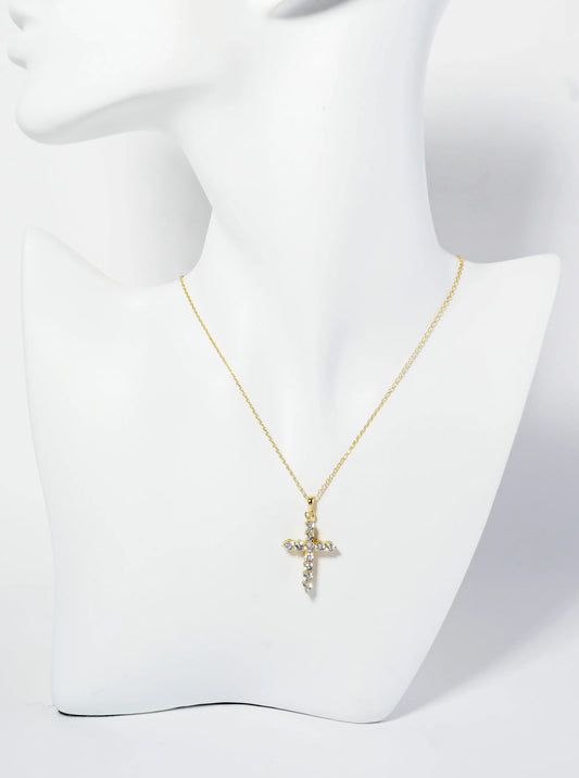 18K Gold Dipped CZ Pave 1 Inch Cross Pendant Necklace