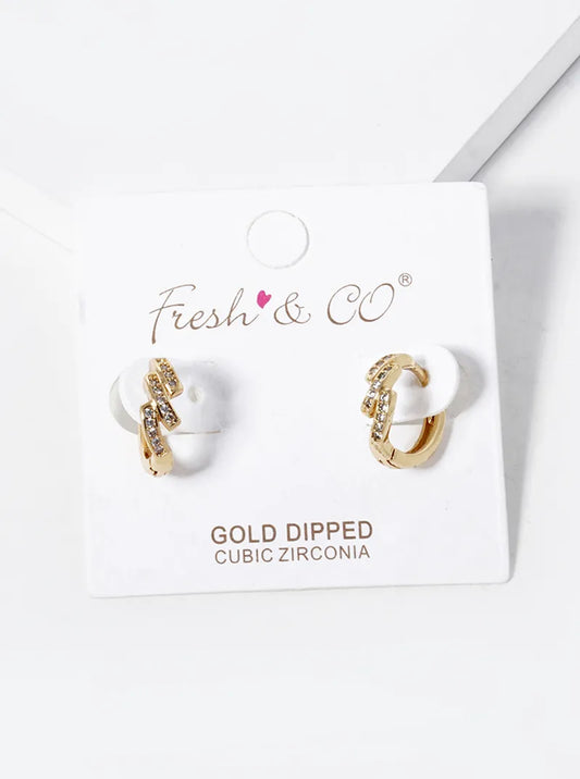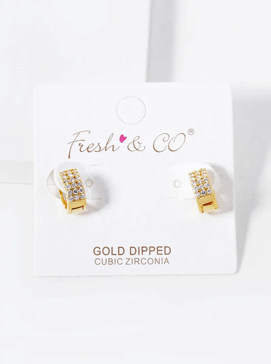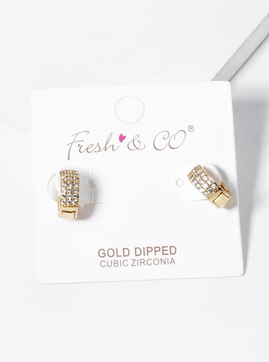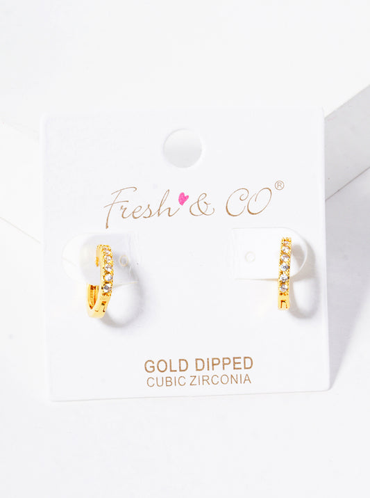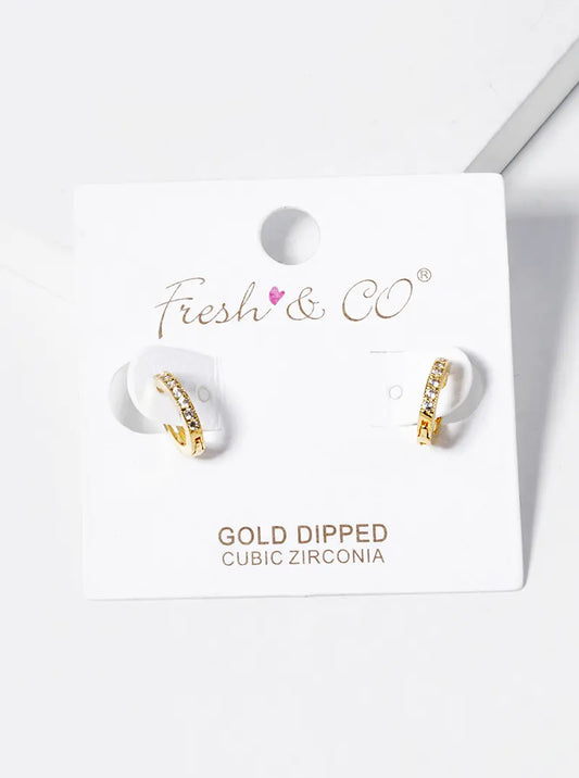 18k Gold Dipped CZ Pave 10mm Huggie Hoop Earrings