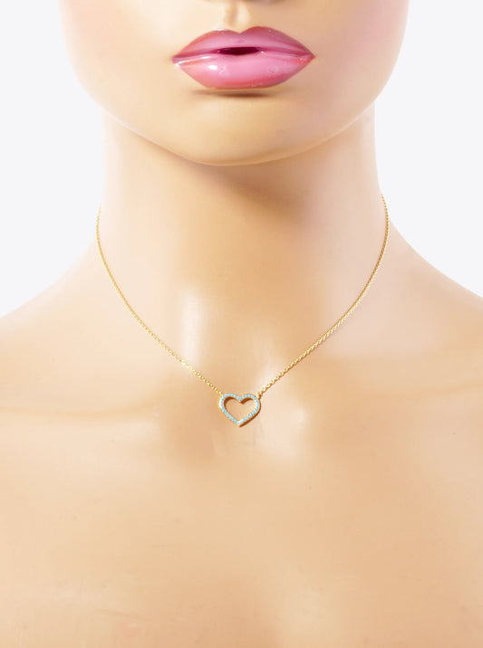 18K Gold Dipped CZ Pave 10mm Heart Pendant Necklace