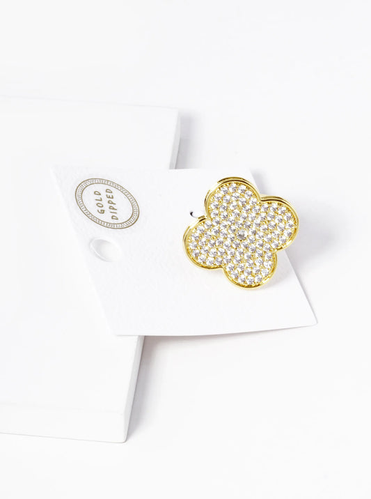 18k Gold Dipped CZ Pave 25mm Quatrefoil Adjustable Ring