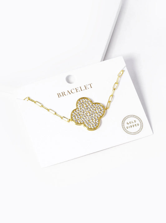 18k Gold Dipped CZ Pave 25mm Quatrefoil Chain Bracelet