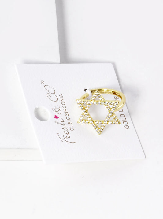 18K Gold Dipped CZ Pave 22mm Star Of David Adjustable Ring